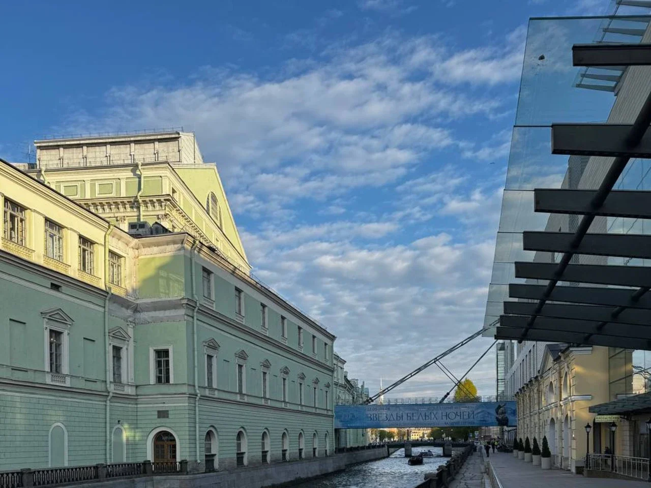 современные здания Мариинский-2, концертный зал Мариинского театра, Большую хоральную синагогу, Яани Кирик и дворец вел. кн. Алексея Александровича (Дом музыки).